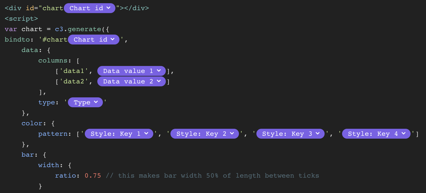 https://c3js.org/ . We have also applied the chart to the CMS to configure the outputs, from the CMS users can choose chart type and data values, there are limitations based on the chart type.